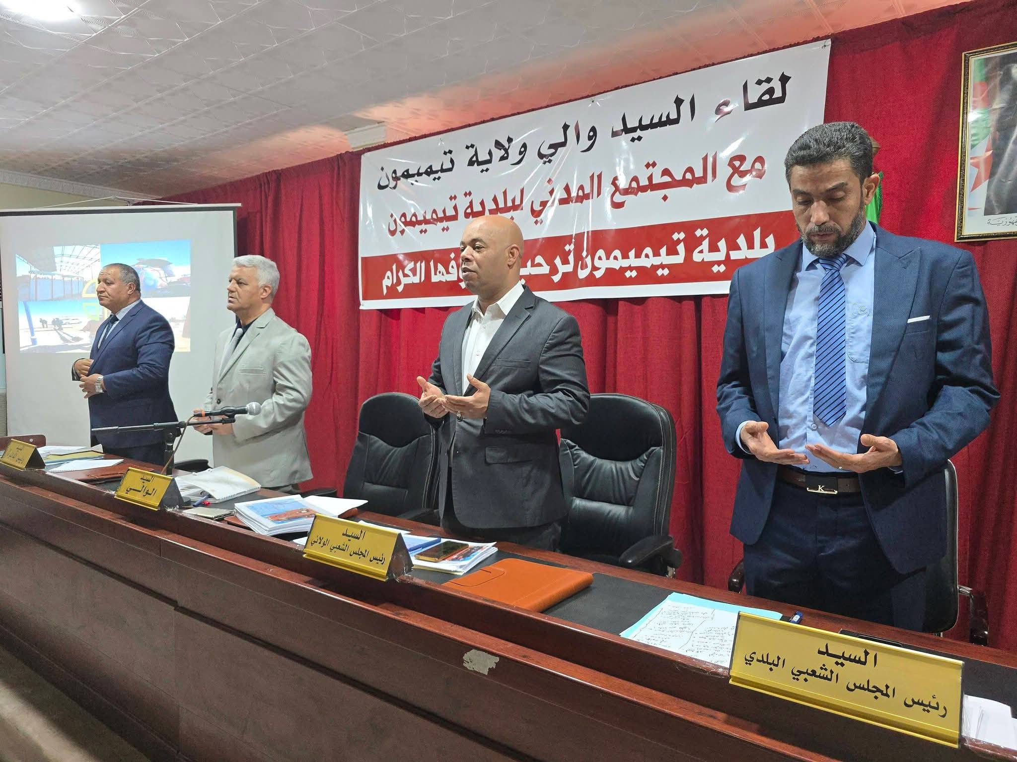 في إطار تكريس الديمقراطية التشاركية و تحسين الحكامة المحلية، و تنفيذا لتعليمات السيد رئيس الجمهورية عقد صباح اليوم رئيس المجلس الشعبي البلدي لبلدية تيميمون السيد مولاي لخضر عبد الله تحت إشراف السيد والي الولاية السيد سونة بن و السيد يدا سالم رئيس المجلس الشعبي الولائي وبحضور السادة: